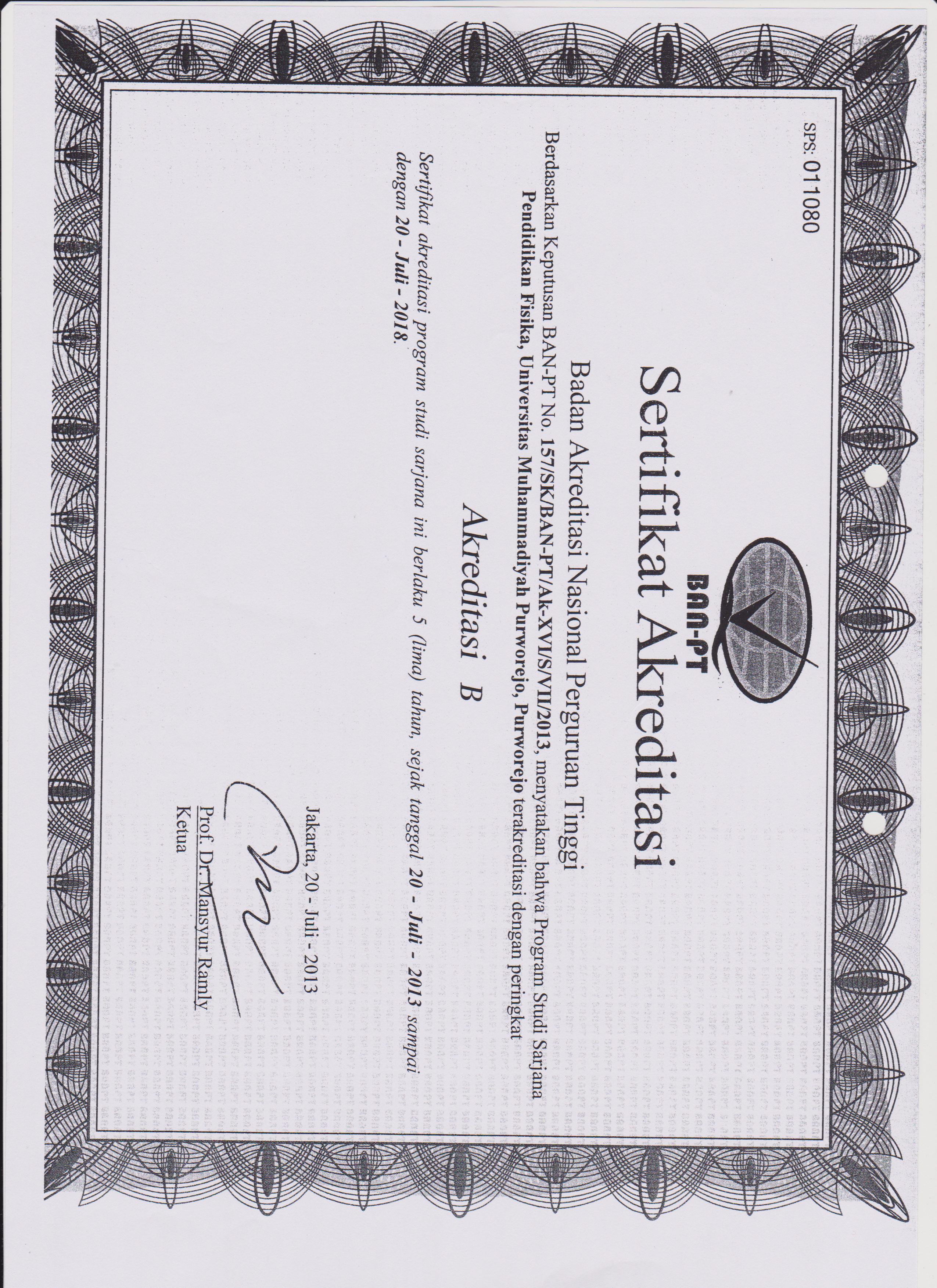 Akreditasi Program Studi Pendidikan Fisika