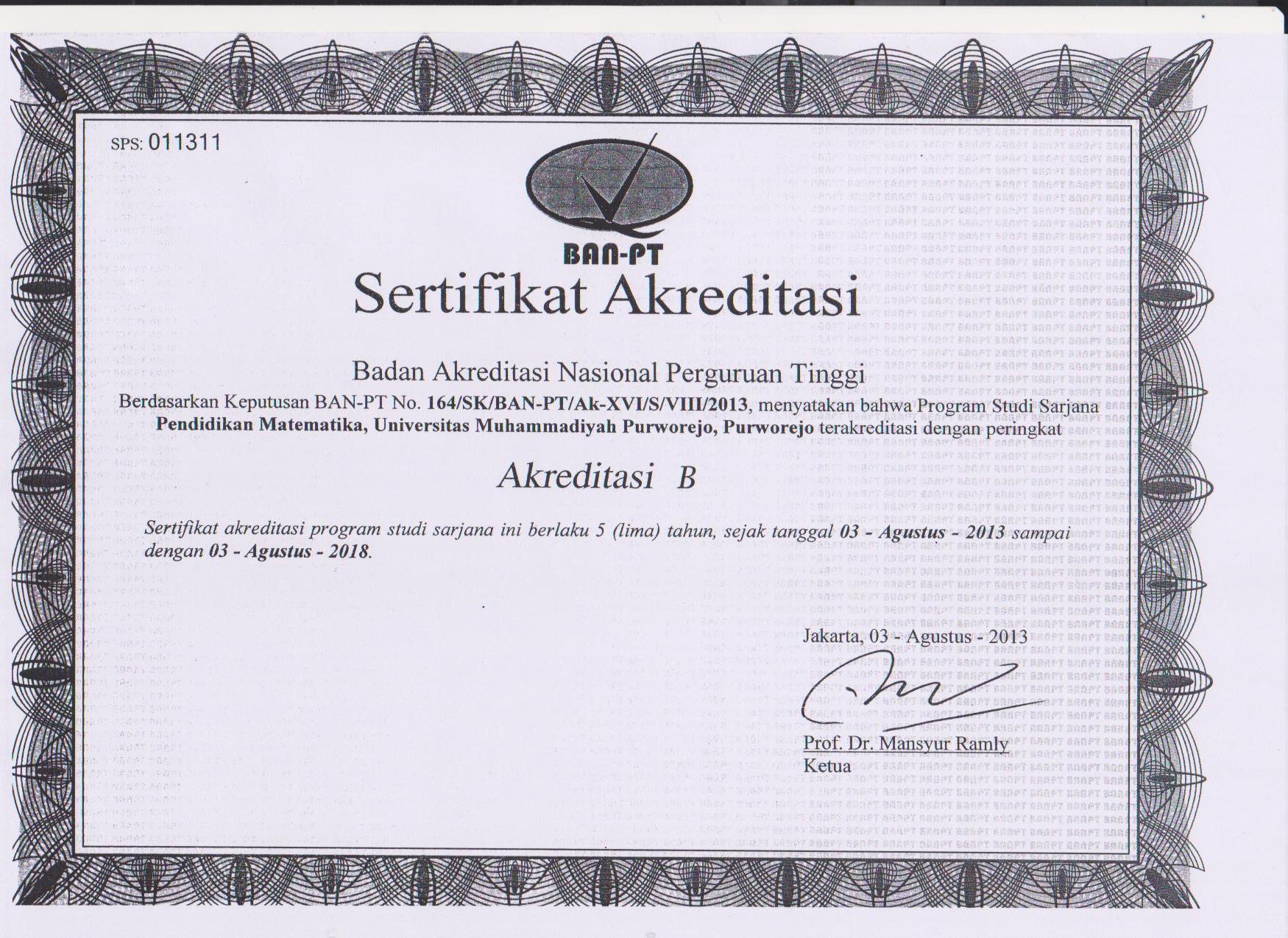 Akreditasi Program Studi Pendidikan Matematika